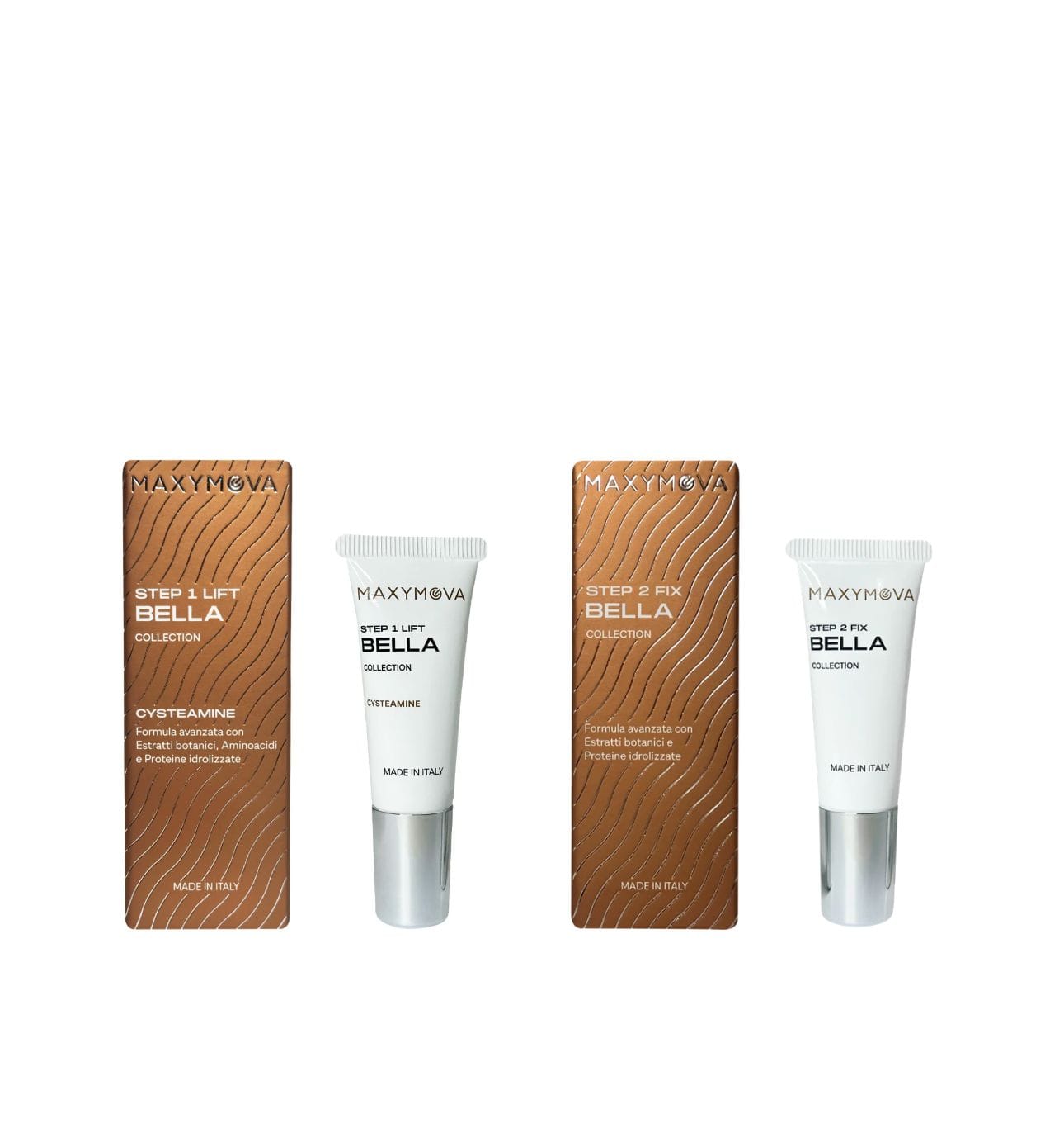 Cysteamine korėjietiško laminavimo rinkinys – Bella kolekcija – tai profesionali dviejų žingsnių sistema, sukurta tiksliam, kontroliuojamam ir ilgalaikiam antakių bei blakstienų laminavimo rezultatui.